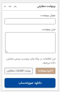 افزایش فروش: باکس توضیحات سفارشی برای قرار دادن کد تخفیف، پیام تشکر، لینک آموزشی و پیشنهادات خرید.(ریتارگت مشتریان) 🎯